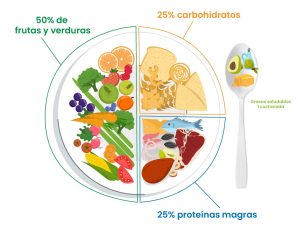 - Verduras y frutas, 50% del plato.